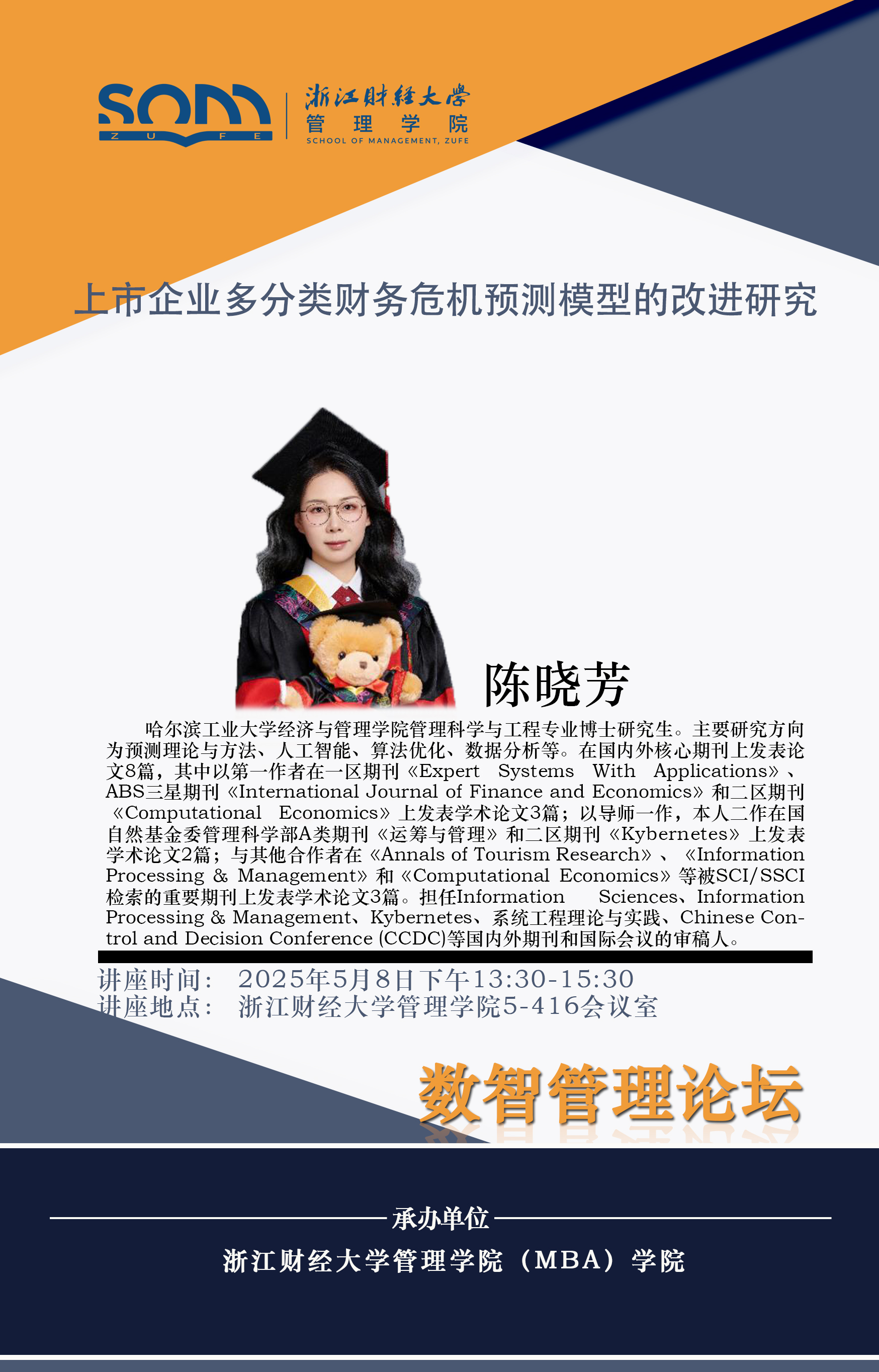 香蕉视频 新财经战略系列学术活动2025年第27期【学术报告】陈晓芳:上市企业多分类财务危机预测模型的改进研究