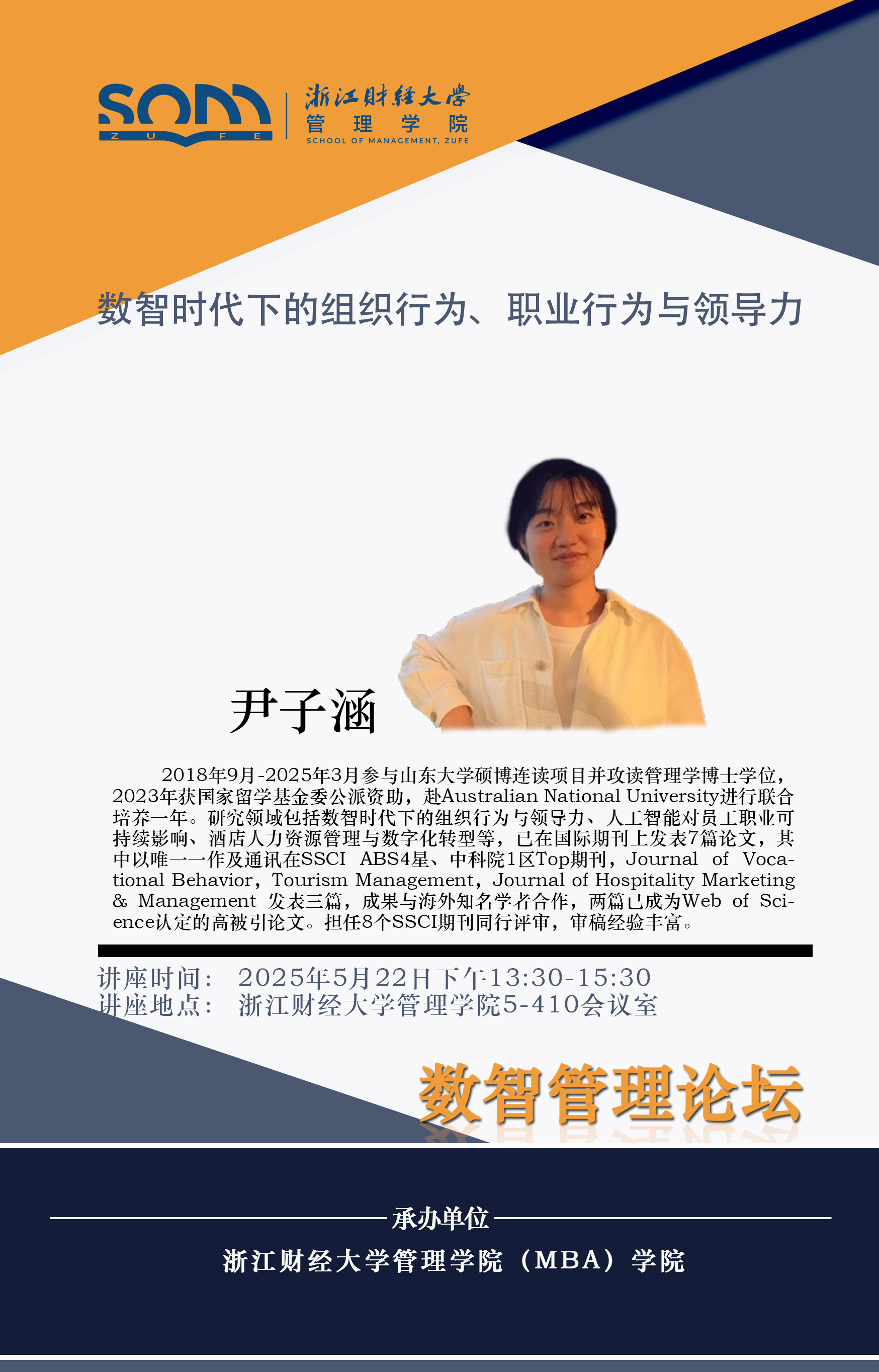 香蕉视频 新财经战略系列学术活动2025年第38期【学术报告】尹子涵:数智时代下的组织行为、职业行为与领导力
