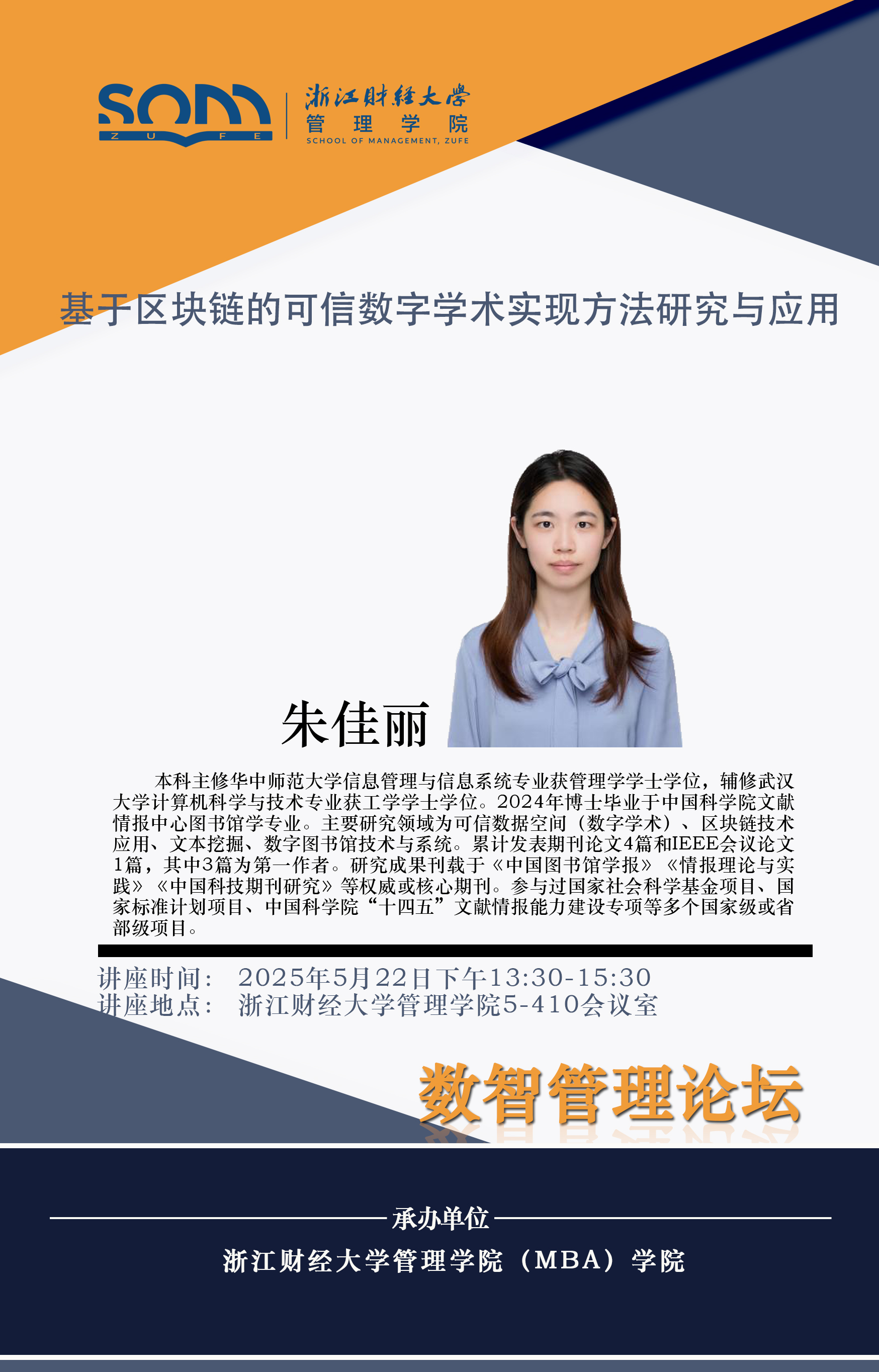 香蕉视频 新财经战略系列学术活动2025年第40期【学术报告】朱佳丽:基于区块链的可信数字学术实现方法研究与应用