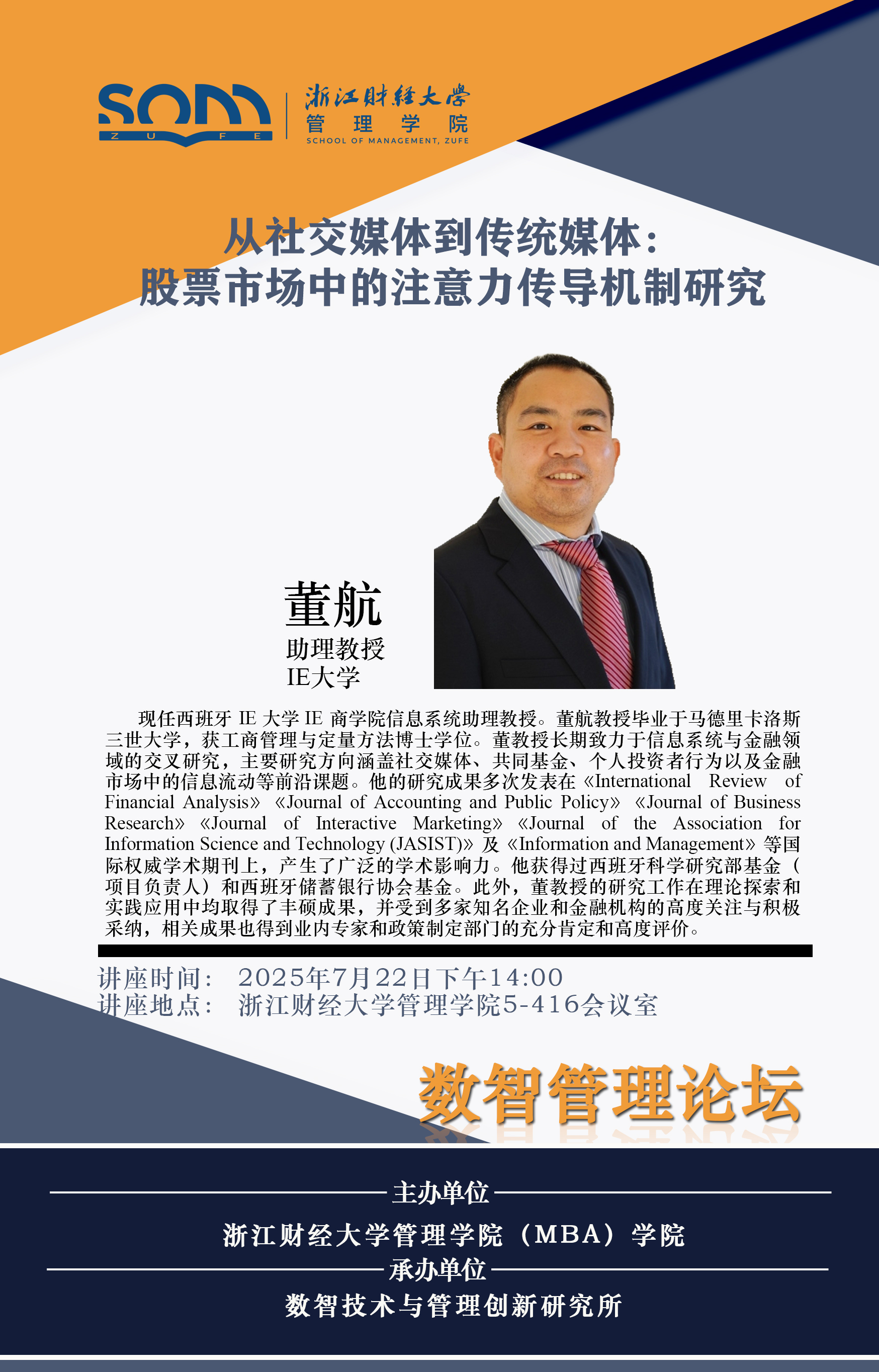 香蕉视频 新财经战略系列学术活动2025年第48期【学术报告】董航:从社交媒体到传统媒体:股票市场中的注意力传导机制研究