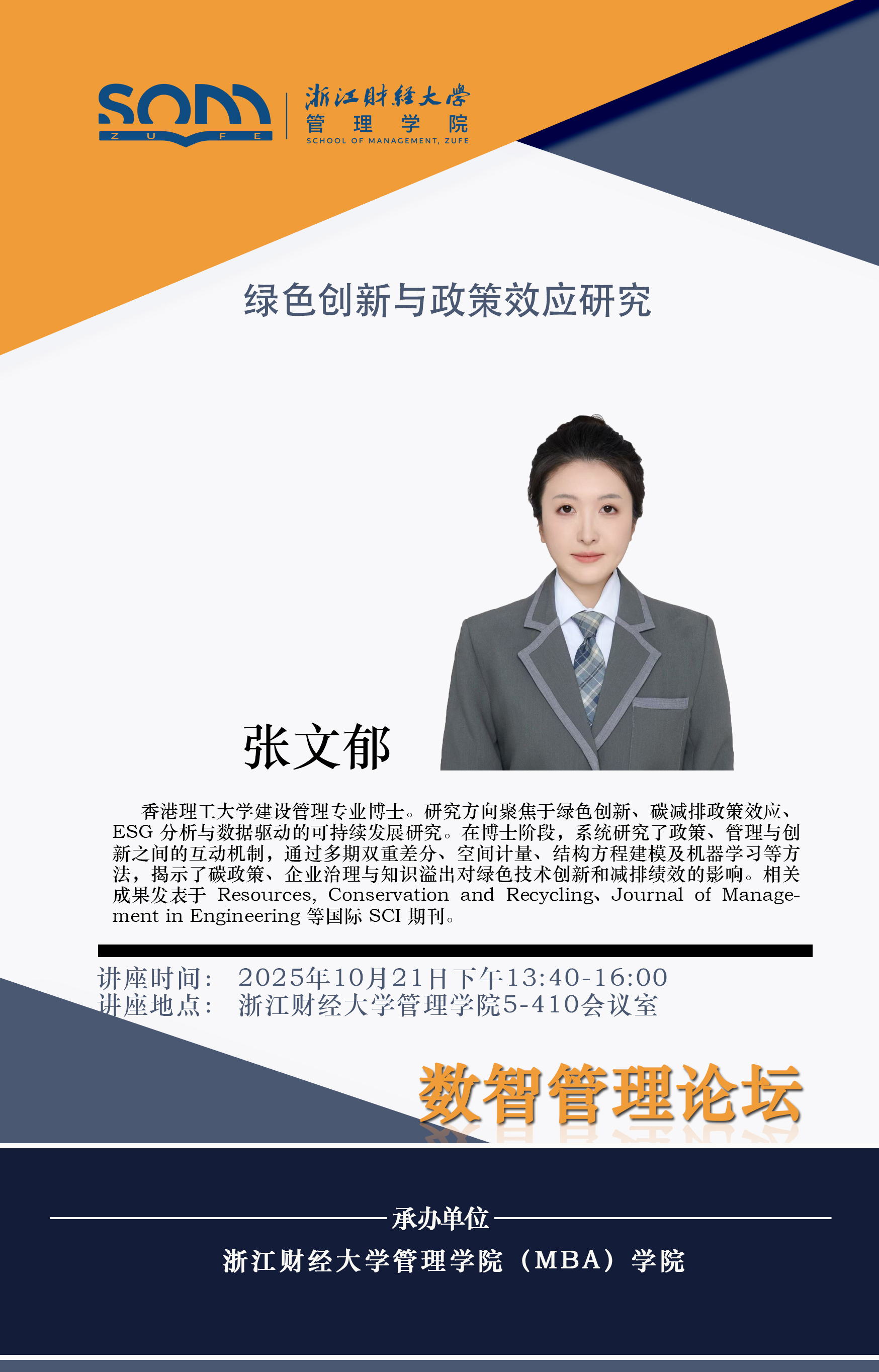 香蕉视频 新财经战略系列学术活动2025年第51期【学术报告】张文郁:绿色创新与政策效应研究