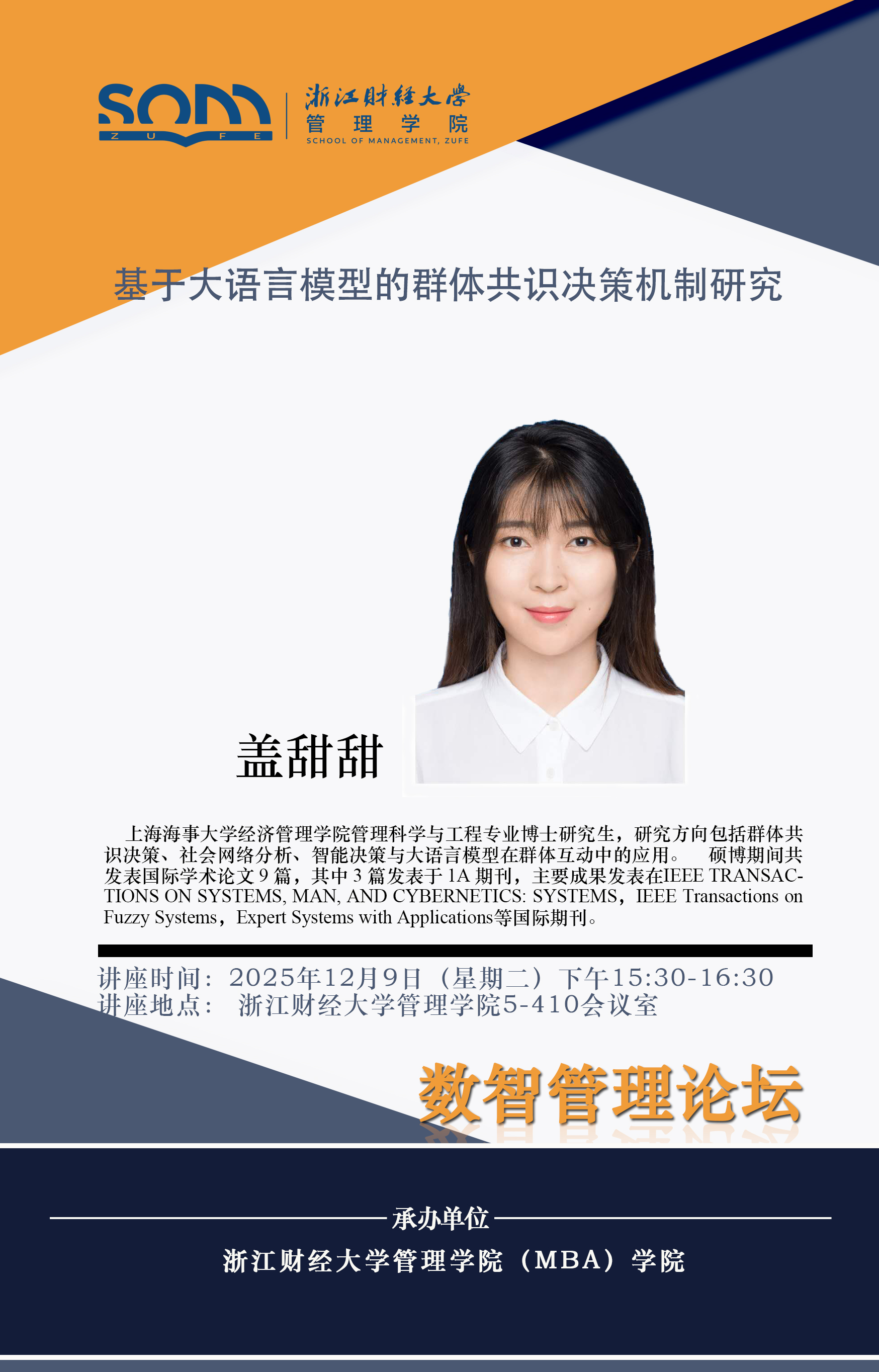 香蕉视频 新财经战略系列学术活动2025年第64期【学术报告】盖甜甜:基于大语言模型的群体共识决策机制研究[Rose]