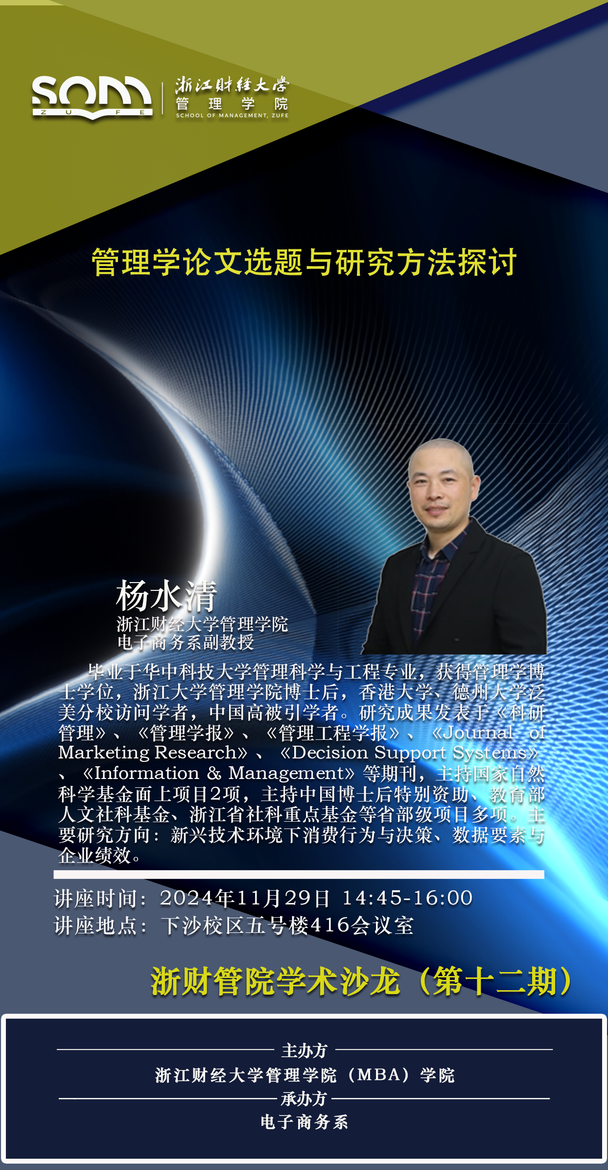 【浙财管院学术沙龙(第十二期)预告】杨水清:管理学论文选题与研究方法探讨
