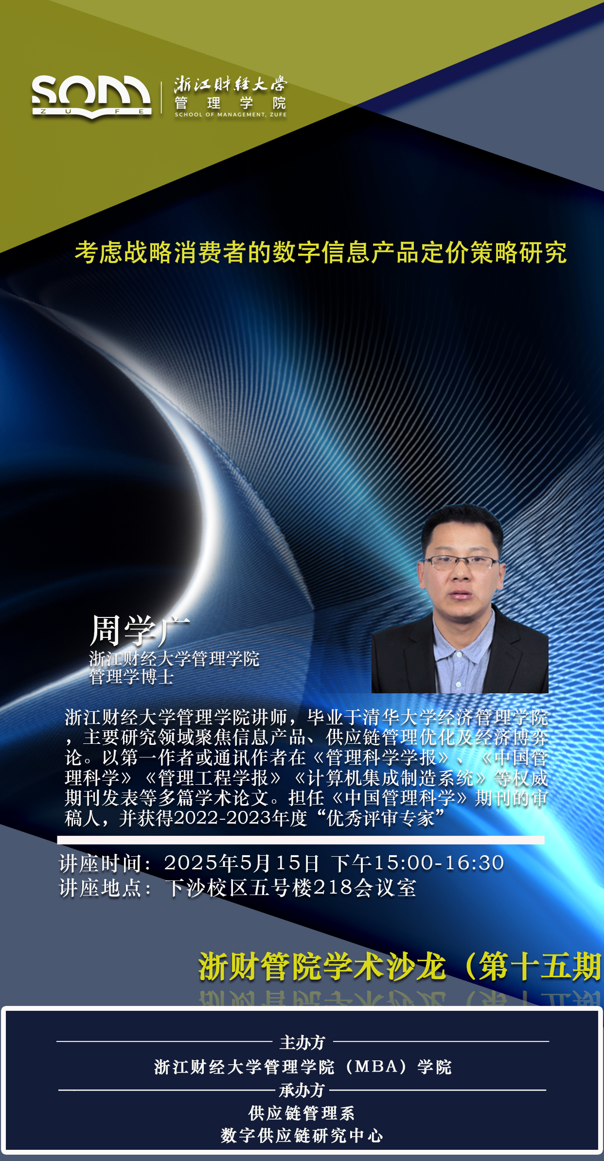 【浙财管院学术沙龙(第十五期)预告】周学广:考虑战略消费者的数字信息产品定价策略研究