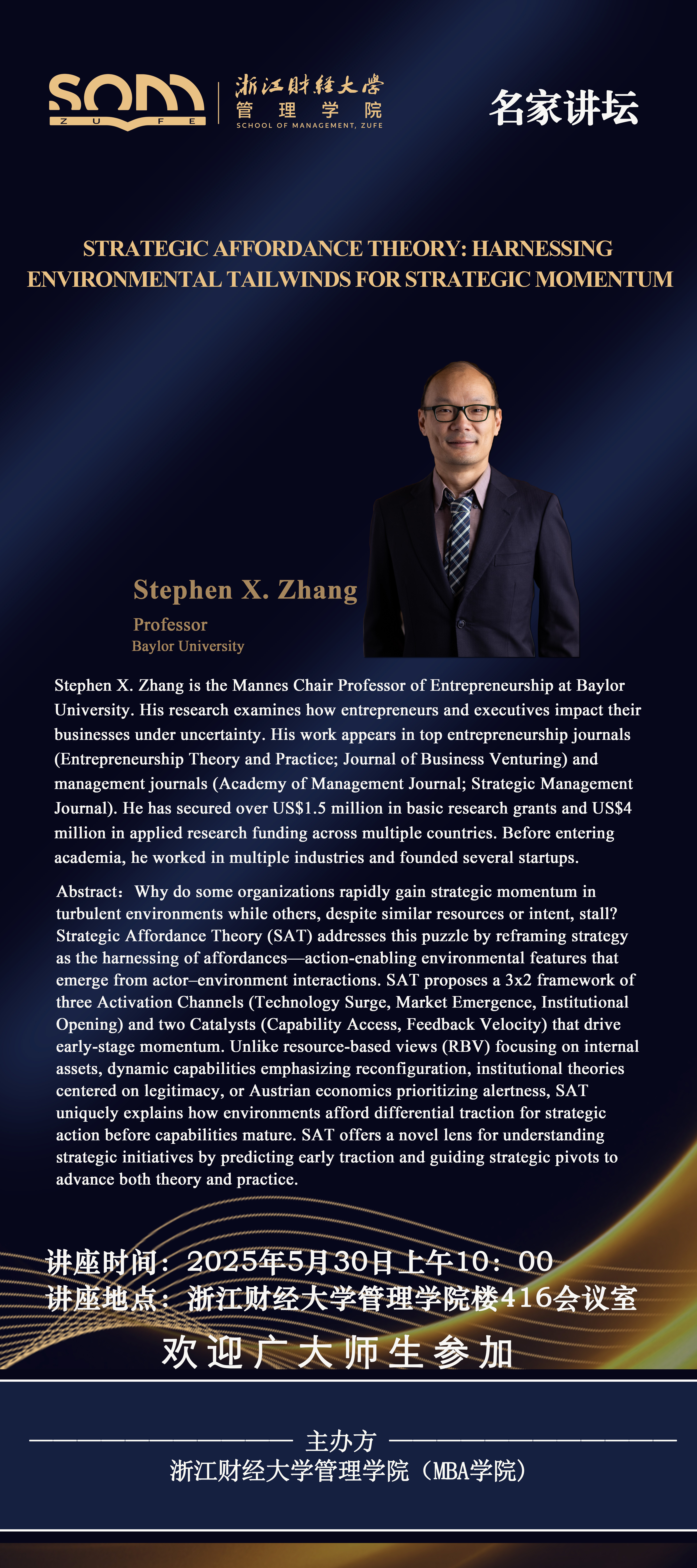 香蕉视频 新财经战略系列学术活动2025年第41期【名家讲坛】Stephen X. Zhang:Strategic Affordance Theory :Harnessing Environmental Tailwinds for Strategic Momentum