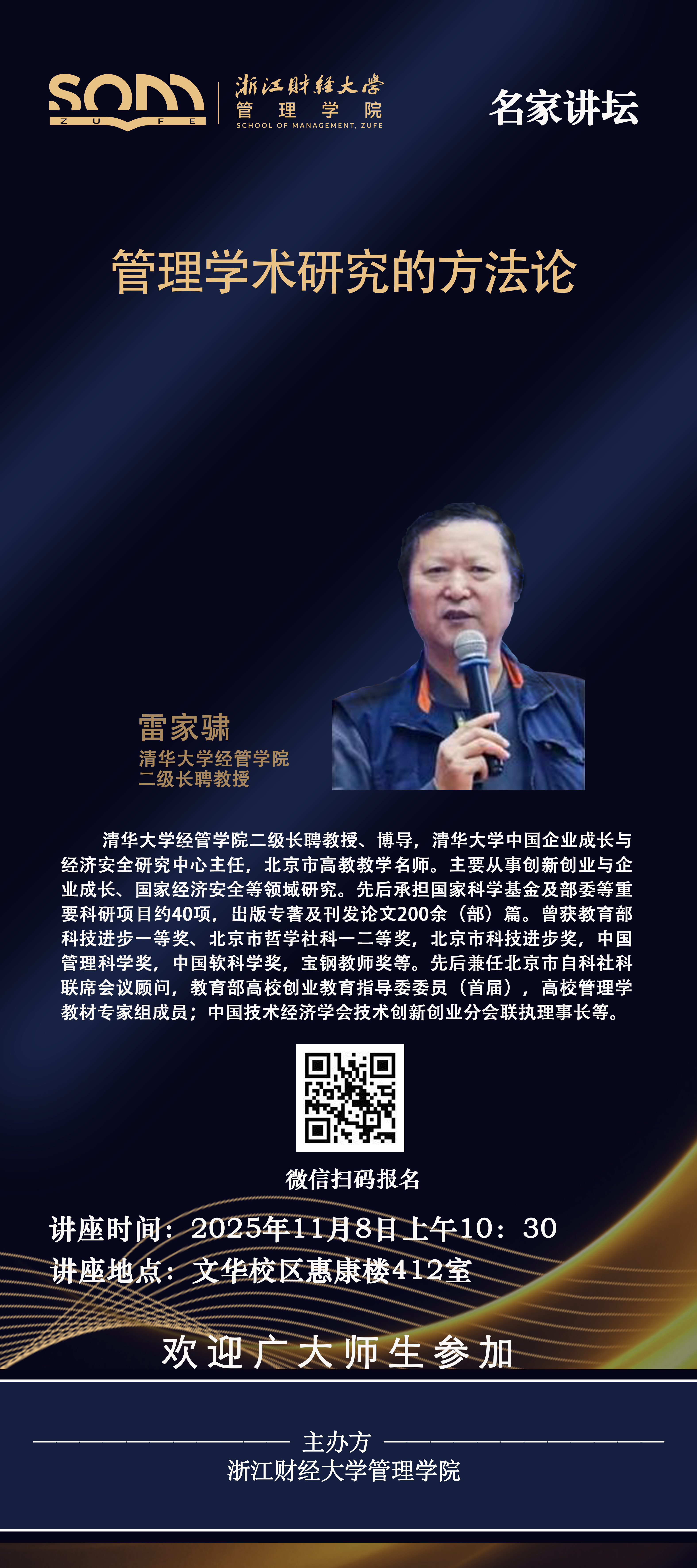香蕉视频 新财经战略系列学术活动2025年第58期【名家讲坛】雷家骕:管理学术研究的方法论