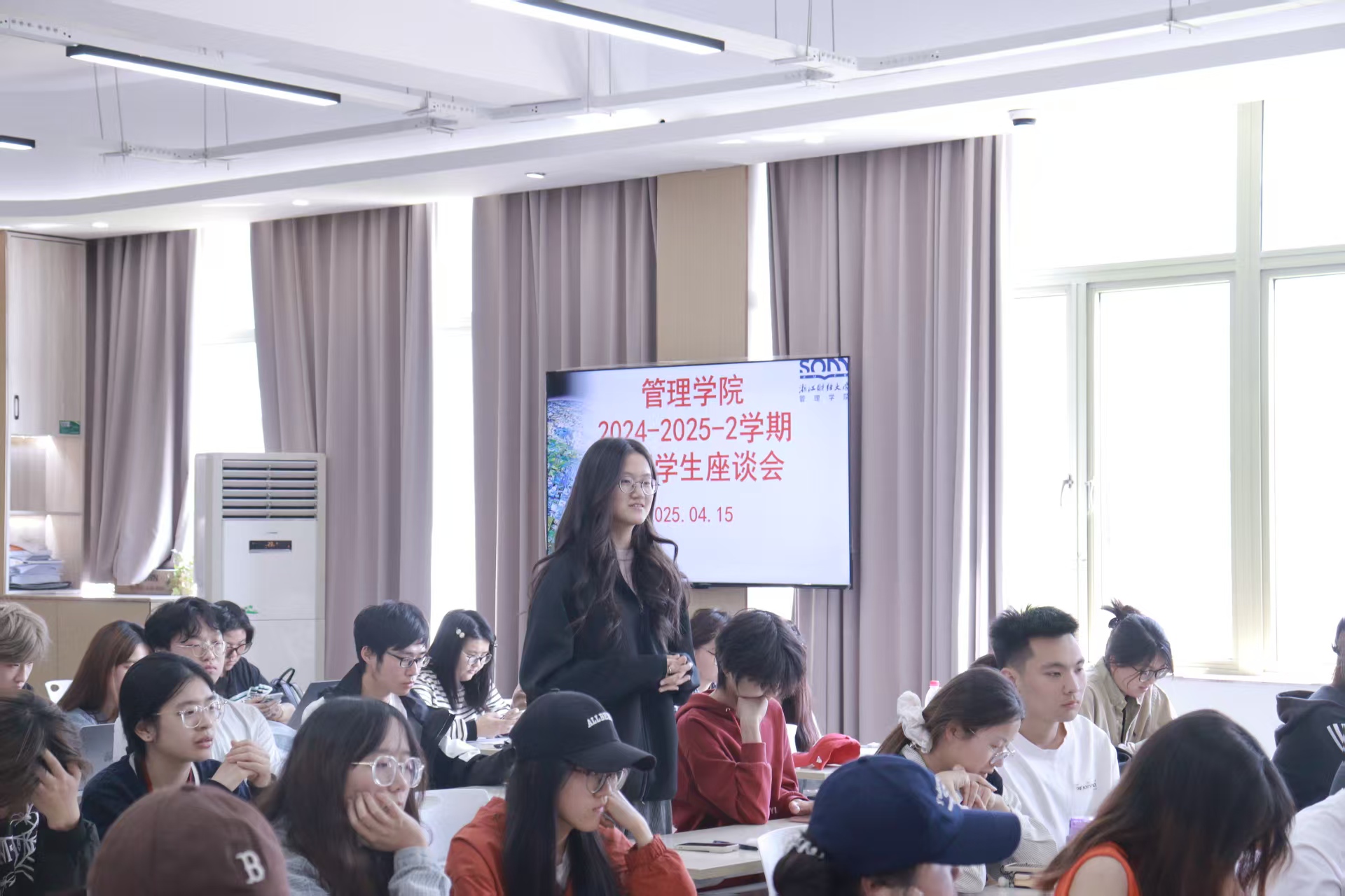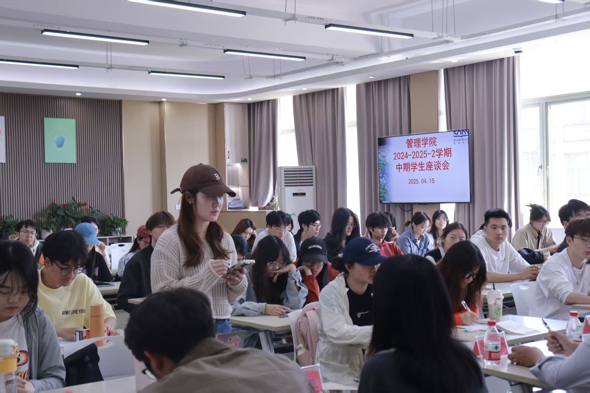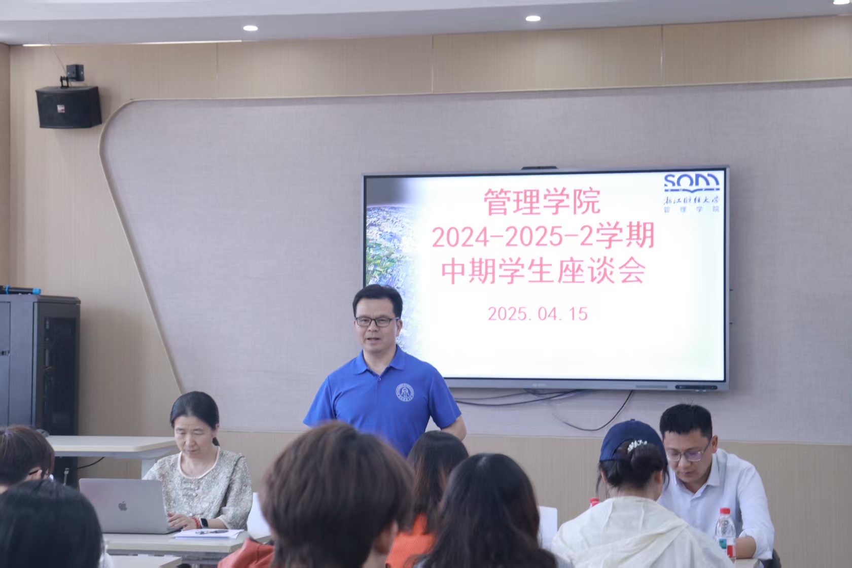 在学院楼411顺利召开了2024-2025第二学期本科生中期座谈会。会议由本科生教学督导组组长郭军灵主持。吴丽民、汪志强、杨亚、周学广、李桢、陈蓓蓓、钱婕、周依凡等老师及22、23、24级各班级学生代表共50余人参加了本次座谈会。
