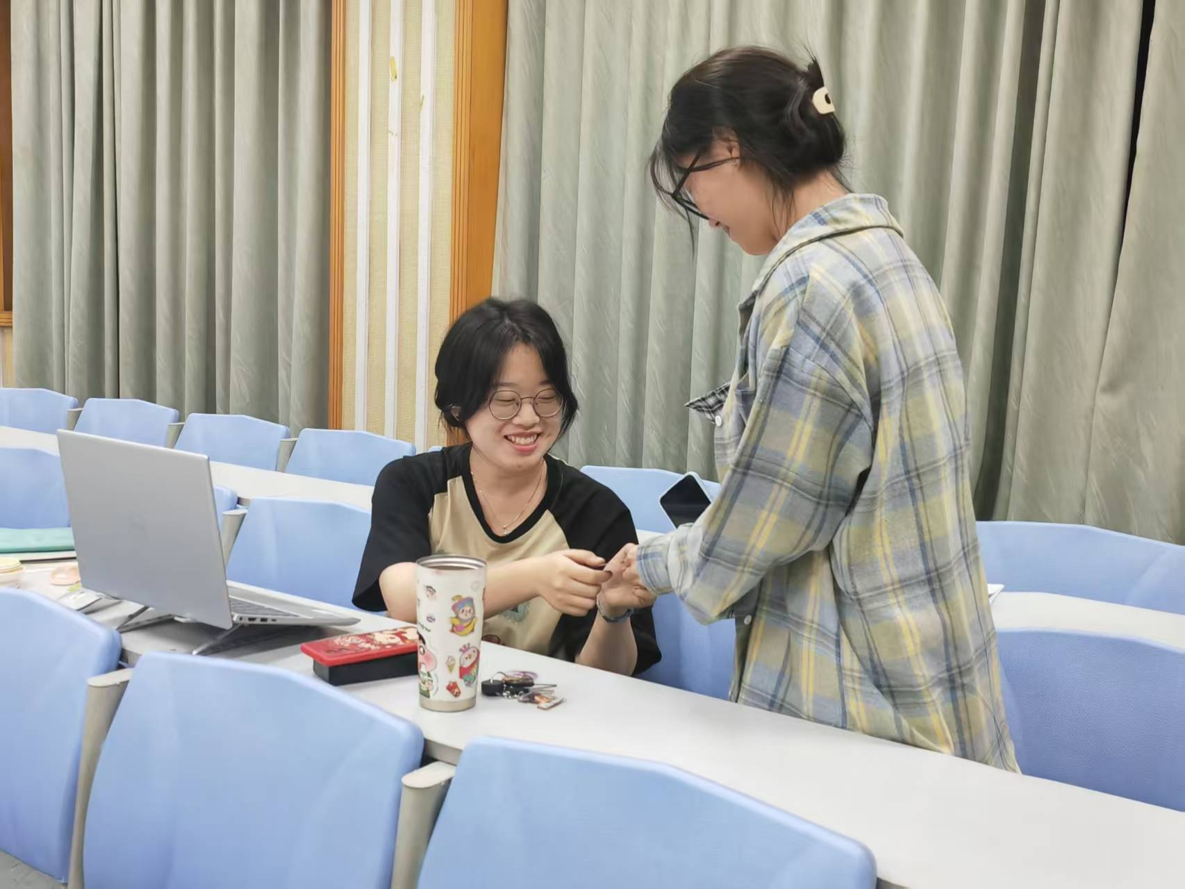 夜幕缓缓落下,管院楼内灯火辉煌,同学们正遨游在知识的海洋中。老师和学习部的成员们,脚步轻柔地走进一间间教室,开启了这一场温暖人心的相遇。每到一处,映入眼帘的都是同学们专注学习的模样,或是低头奋笔疾书,或是小声交流探讨。当我们说明此次来意,并递上夜宵券时,他们先是露出了惊讶的神情,转瞬之间,脸上便绽放出灿烂的笑容。有的同学兴奋地与身旁的伙伴分享这份意外之喜,有的同学则满含感激,连连道谢。